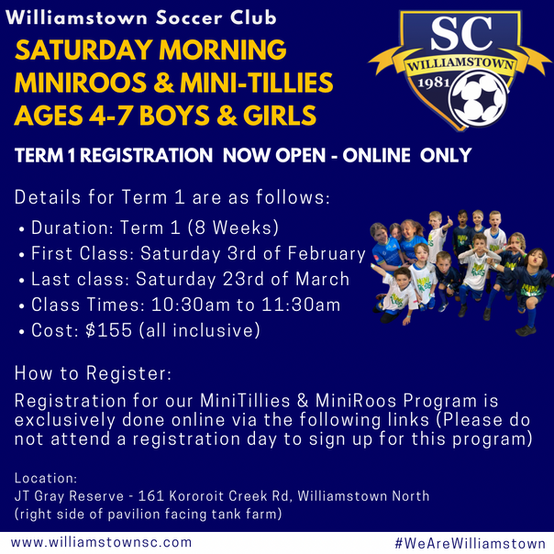Registration for our MiniTillies & MiniRoos Program is exclusively done online via the following links (Please do not attend a registration day to sign up for this program)